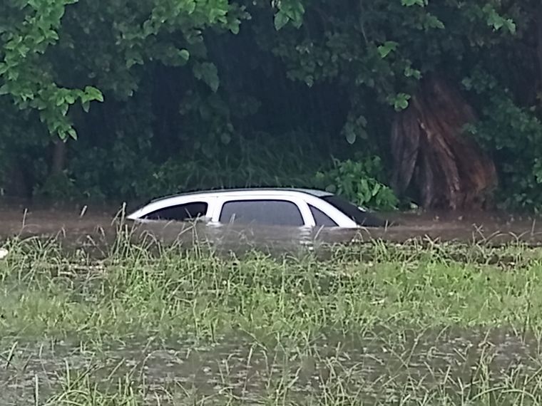Un auto quedó bajo el agua en barrio Liceo 2° Sección