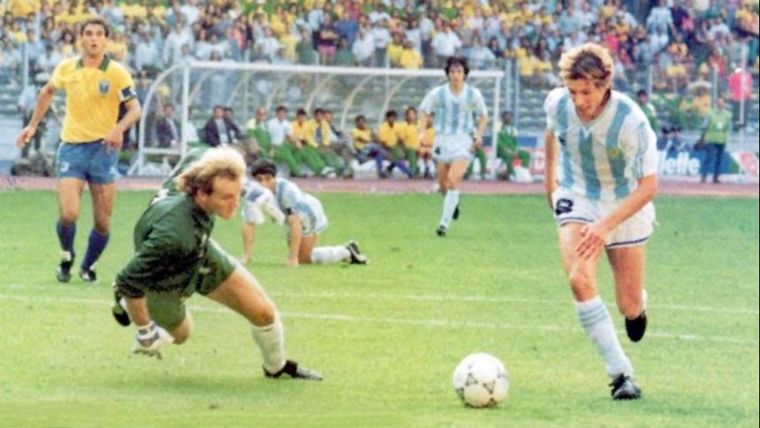 Recuerdo del tanto del “Pájaro” al clásico rival en el Mundial de Italia 90, tras una gran jugada de Diego Maradona, que significó el triunfo y la clasificación a cuartos de final.