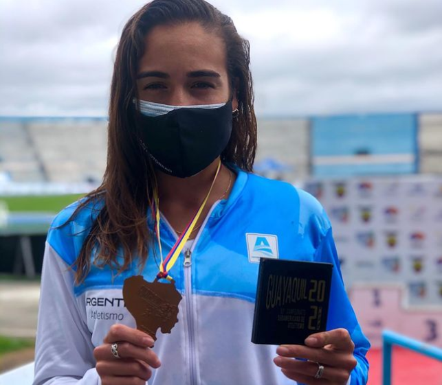La estudiante de Siglo 21 se quedó con el tercer puesto en la prueba de 3000 metros con obstáculos en Guayaquil. Su medalla se la regaló a Santi Maratea, como agradecimiento.