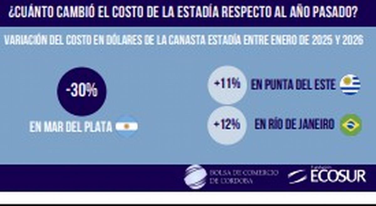Como resultado, el costo de la estadía en Mar del Plata bajó un 30% respecto al verano pasado, mientras que en Punta del Este y Río de Janeiro subió un 11% y un 12%, respectivamente.