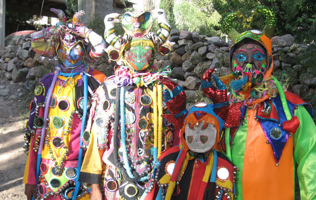 Los Tekis vestidos de diablos, encabezaron la ceremonia, tocaron los carnavalitos desde el punto más alto de la montaña, a cuyos pies corre un río en el que año tras año se cumple con el ritual del desentierro.