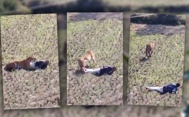 Instantes después, el atacado se levantó con normalidad. El paso del tigre dejó como resultado tres personas heridas. El felino escapó por el bosque luego de la emboscada.