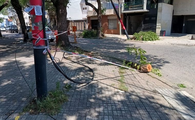 La situación dejó cables esparcidos por la calle y un peligro latente para quienes transitan por la zona de Balcarce y Viamonte. Un habitante de la zona relató la secuencia a Cadena 3 Rosario.