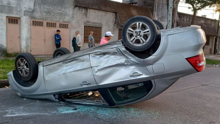 “Fue un susto, gracias a Dios pude salir tranquilo”, contó a Cadena 3 Rosario uno de los protagonistas, al costado de su vehículo, el cual quedó dado vuelta en Viamonte y Alsina.