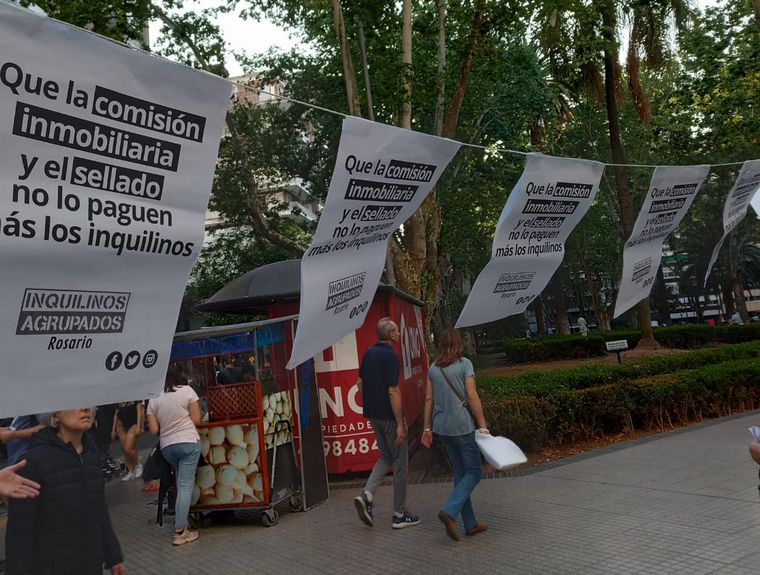 El lugar elegido fue la plaza Pringles, enclave céntrico, donde el referente de la agrupación, Sebastián Artola, afirmó que Rosario “es la ciudad donde más aumentaron los alquileres en los últimos años”.