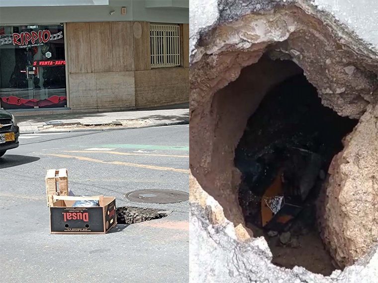 “Nos dimos cuenta 13.15, pusimos algo para que se vea (un cajón de verduras). Un vecino me comentó del agujero, lo vimos y se me dio para que, por las dudas, haya alguna señalización”, dijo un comerciante que atiende una verdulería en la cuadra.