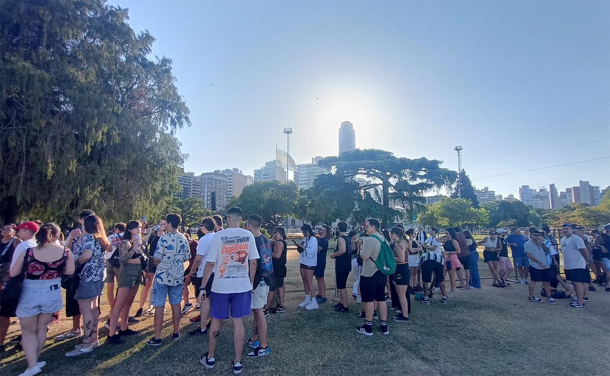 Aunque la postal del Monumento aún se ve parcialmente opacada por lonas y chapones debido a las obras en curso, el clima que se respira es de expectativa y entusiasmo. De a poco, el público comienza a acercarse, especialmente quienes buscan ubicarse cerca del escenario.
