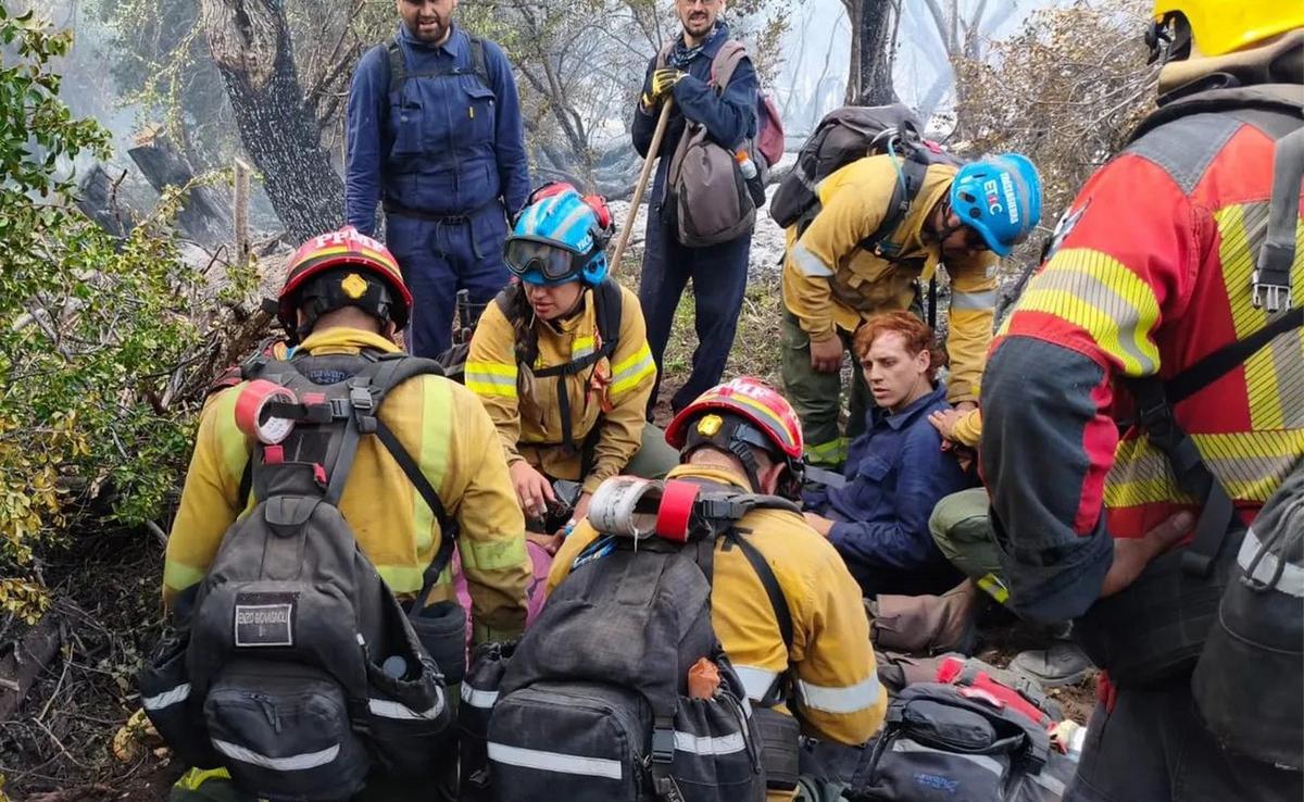 ¿Por qué se realizó el rescate? Dos hombres fueron alcanzados por árboles caídos debido al incendio, sufriendo lesiones.