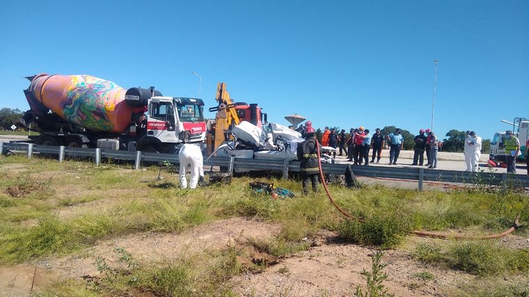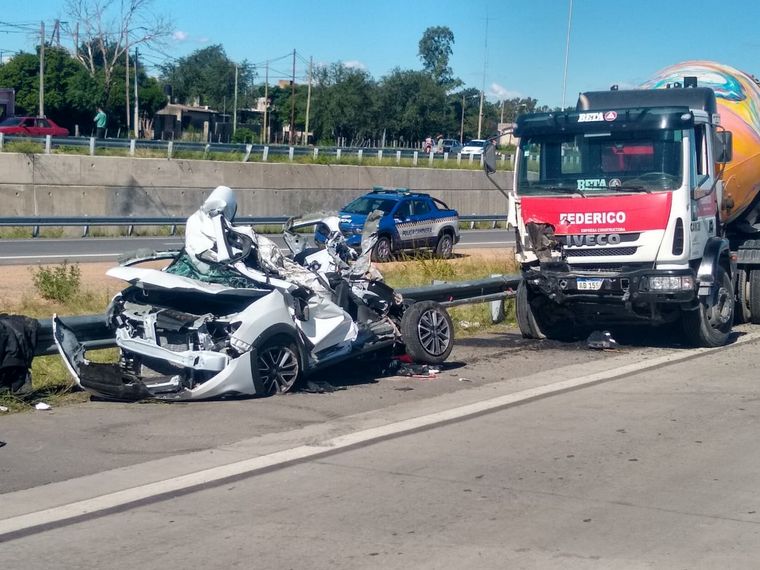En esa maniobra, el vehículo particular es impactado bruscamente en la parte trasera por un camión cementero que transitaba en el mismo sentido.