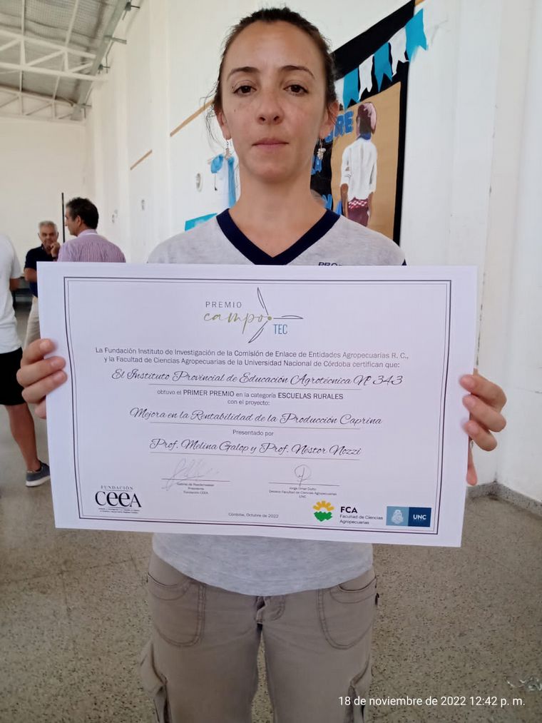 La Fundación de la Comisión de Enlace de Entidades Agropecuarias, la Facultad de Ciencias Agropecuarias de la Universidad Nacional de Córdoba y Cadena 3 entregaron el primer premio de Campo TEC a profesores Ipea 343 de Los Cocos.