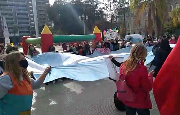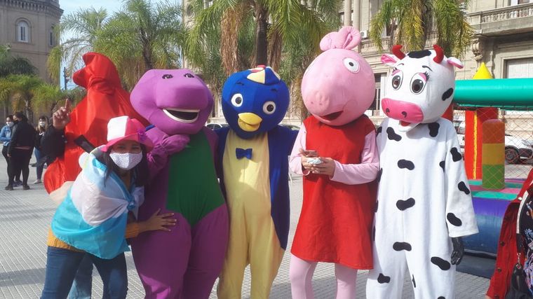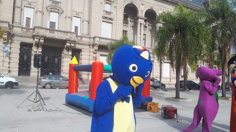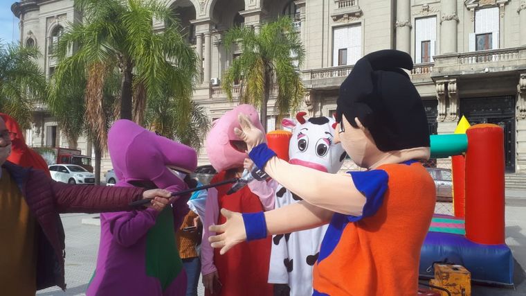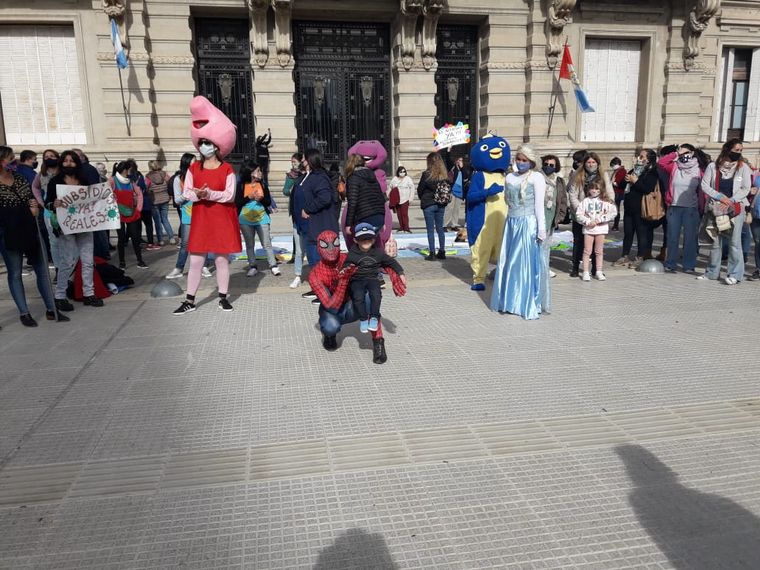 El colorido reclamo se realizó en el mediodía de este miércoles en la plaza 25 de Mayo. Los manifestantes colocaron un castillo inflable y se disfrazaron de característicos personajes infantiles.
