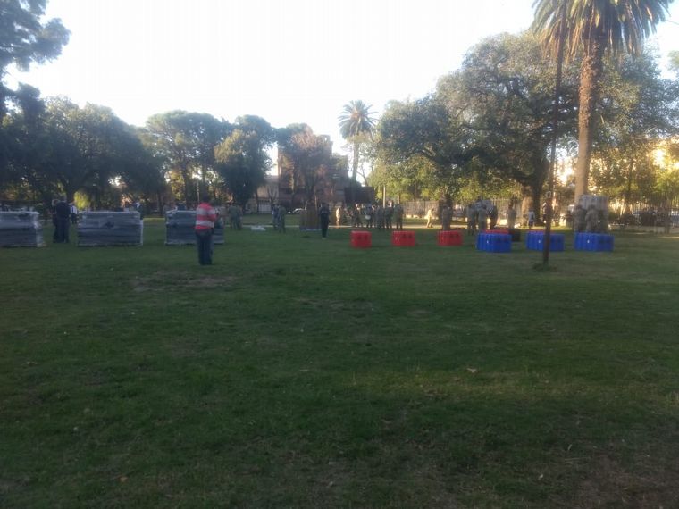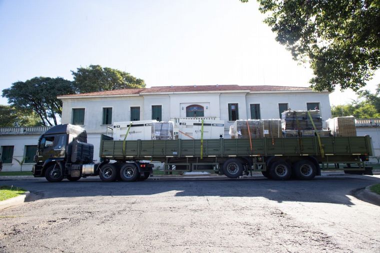 Camiones del Ejército arribaron este martes a la capital provincial para empezar a montar la estructura que se instalará en el predio del Liceo Manuel Belgrano.