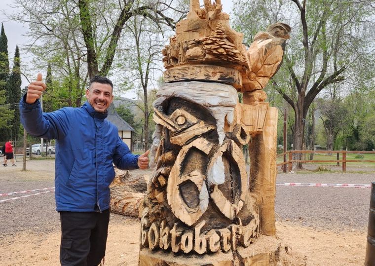 Sobre la escultura en la que trabaja a la vista del público, indicó: “Es una obra que representa las fiestas del pueblo como la de la cerveza, la del chocolate y la masa vienesa, además de la fauna del lugar”.