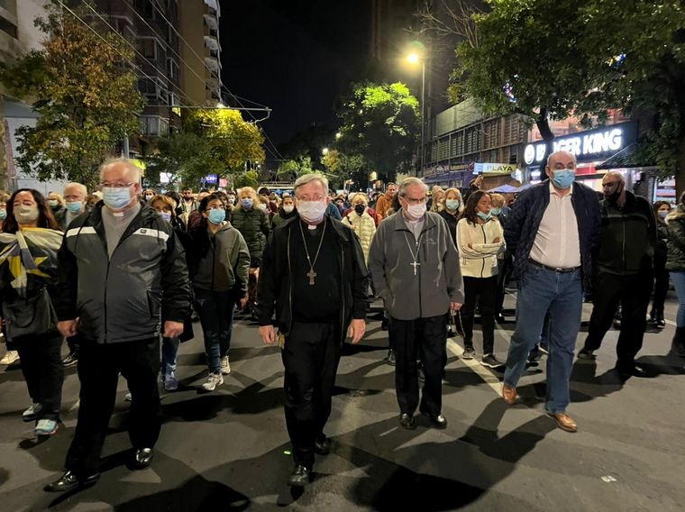 El arzobispo Ángel Rossi y el obispo auxiliar, Pedro Torres, encabezaron la procesión. Posteriormente, dejaron sus reflexiones y oraciones frente a la Catedral.