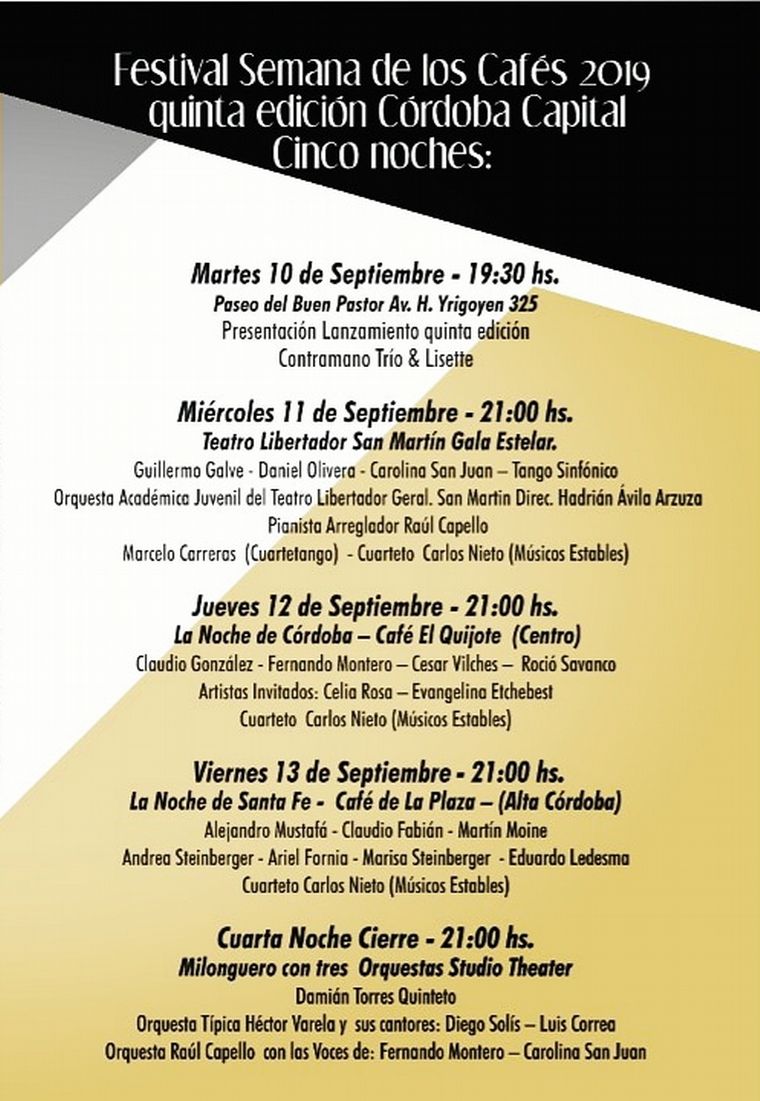 El miércoles, el Teatro del Libertador San Martín será sede de la velada de apertura, con la Orquesta Académica Juvenil que dirige Hadrian Ávila Arzuzacon y con artistas invitados, como Cuartetango y Carlos Nieto. También participa en este concierto de apertura el bandoneonista Astor Cuquejo.