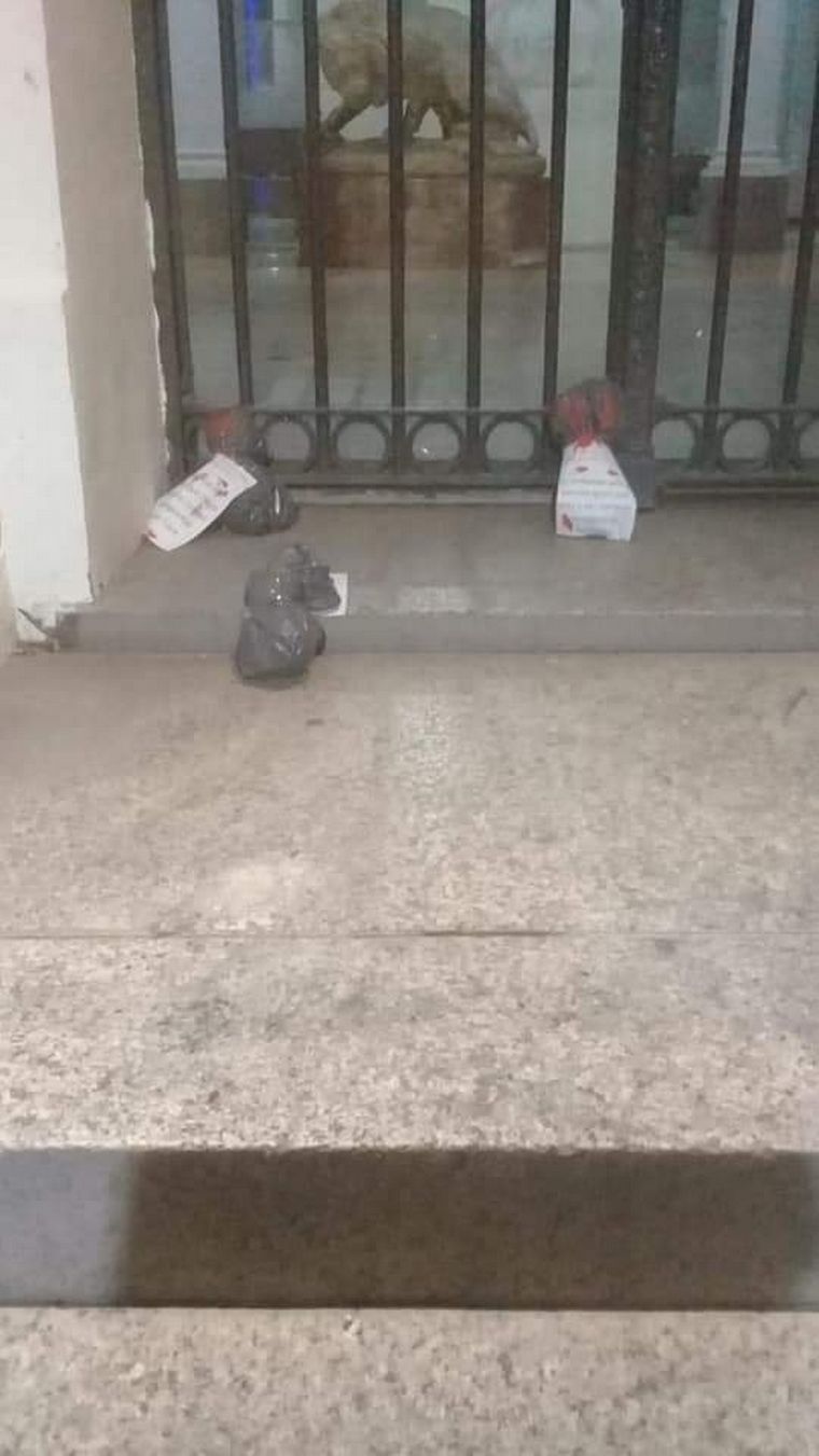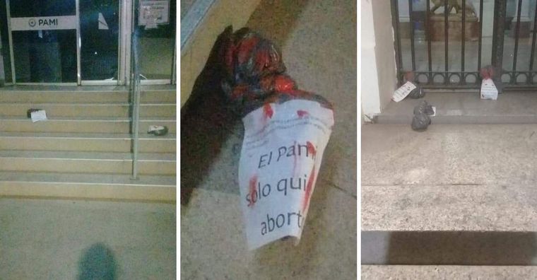 Un grupo de mujeres lanzó bolsas pintadas de rojo y escritas en el Palacio Municipal y en la sede del Pami. La secretaria de Género dijo que se abrió una investigación. Quedaron filmadas por las cámaras de seguridad. Video.