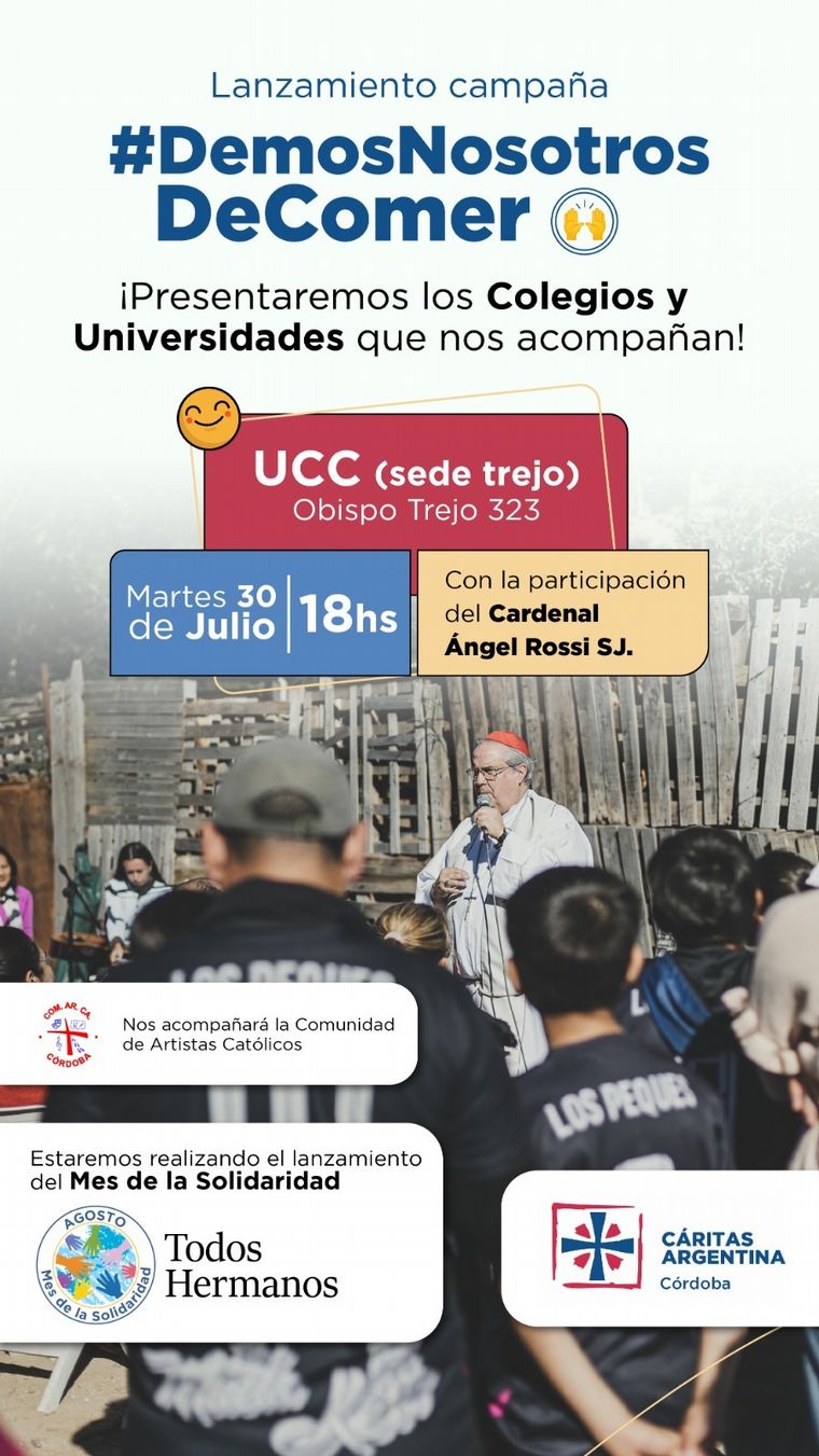 El lanzamiento oficial del "Agosto Solidario" contó con la presencia del cardenal Ángel Rossi en la Universidad Católica, ubicada en la calle Obispo Trejo, al 300.