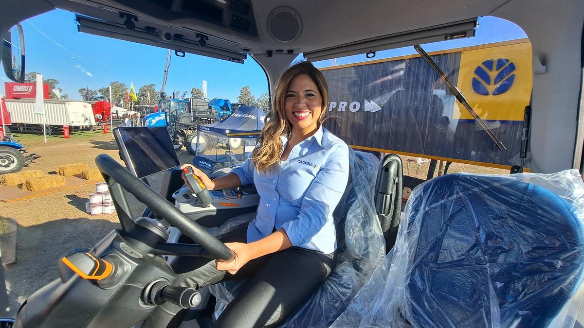 La conductora de "Viva la Radio" una vez más se animó a subirse a un New Holland y dar unas vueltas en la Rural.
