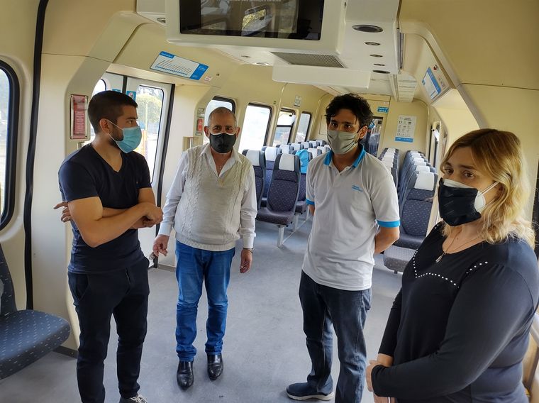 El intendente de Valle Hermoso, Jorge Caserio, recorrió este lunes a la mañana la formación del tren de prueba junto a legisladores y concejales del departamento.