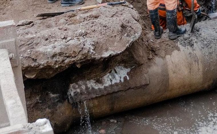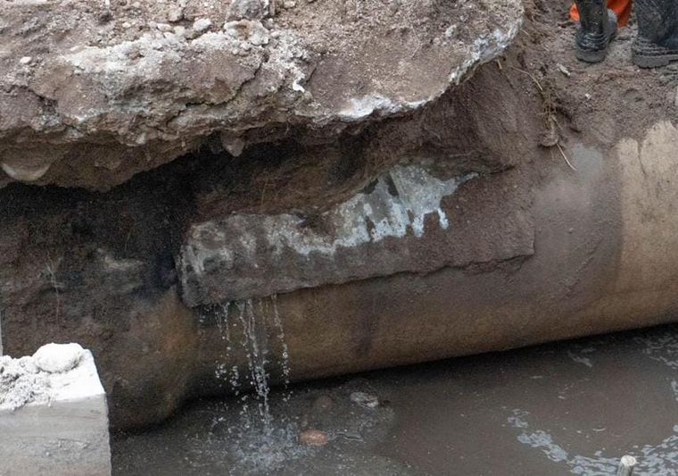 Agregó que se descubrió el caño viejo que sufrió la rotura y se pudo observar a simple vista la presencia de un chapón. "Es un trozo de chapa de zinc acanalada cubriendo el caño en la parte superior y, encima del mismo, un relleno de hormigón", describió.