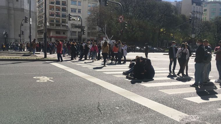 Los jóvenes cortan la avenida 9 de Julio para quejarse por los repetidos obstáculos que les impiden cumplir con la instancia final de la carrera. “El año pasado pasó lo mismo”, dijeron a Cadena 3.