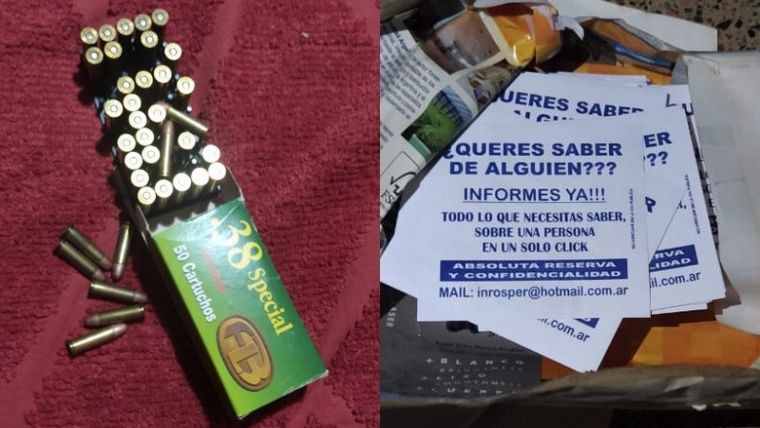 El funcionario dijo, además, que en el procedimiento se secuestró documentación de interés para la causa, dispositivos de almacenamiento electrónico, dinero en efectivo (unos 220 mil pesos), cartuchos 38 special y un cuaderno que tenía datos de diversas personas, a las que luego acosaría en redes sociales.