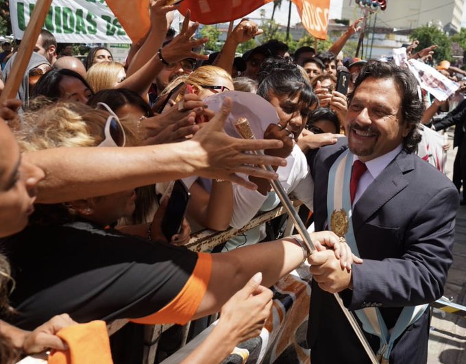 “Elijo entender el juramento no como una promesa”, sino como “una declaración, poniendo como testigo a alguien, y quiero que sea el pueblo el testigo de mi juramento, que es seguir manteniendo contacto permanente con la gente, con los distintos sectores, con los deseos y anhelos de cada ciudadano de la provincia”, explicó.