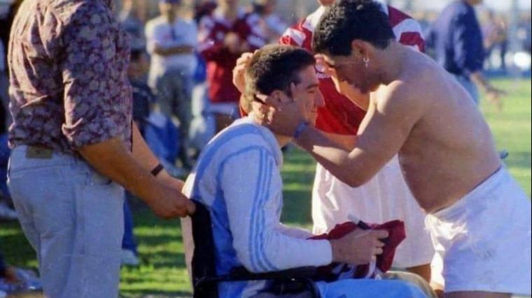En 1994 el joven de 19 años, arquero de Unión de Totoras, sufrió un accidente de tránsito que lo dejó en sillas de ruedas. Durante un partido de exhibición, Maradona le brindó su apoyo. Escuchá.
