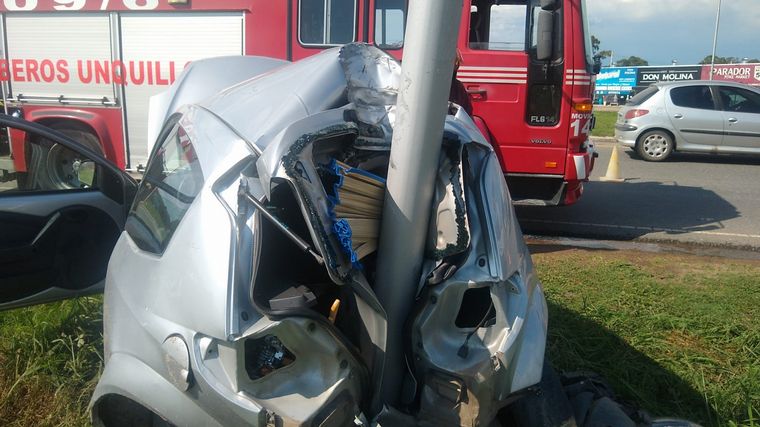 Ocurrió en el kilómetro 13 de la arteria, camino a Río Ceballos, en medio de la tormenta. El conductor perdió el control en una rotonda por el granizo. Dio varios giros e impactó contra un poste.