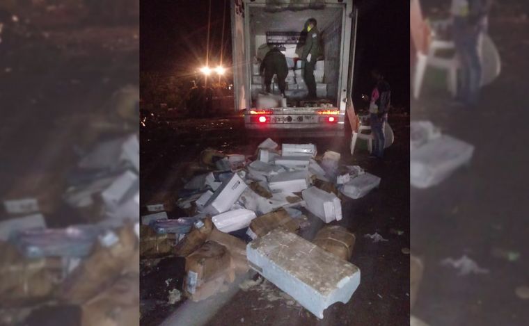 Gómez detalló que el camión tenía el ploteado del programa nacional “Pescado para todos”, se labraron las actas correspondientes y con la colaboración de la municipalidad se enterró la mercadería.