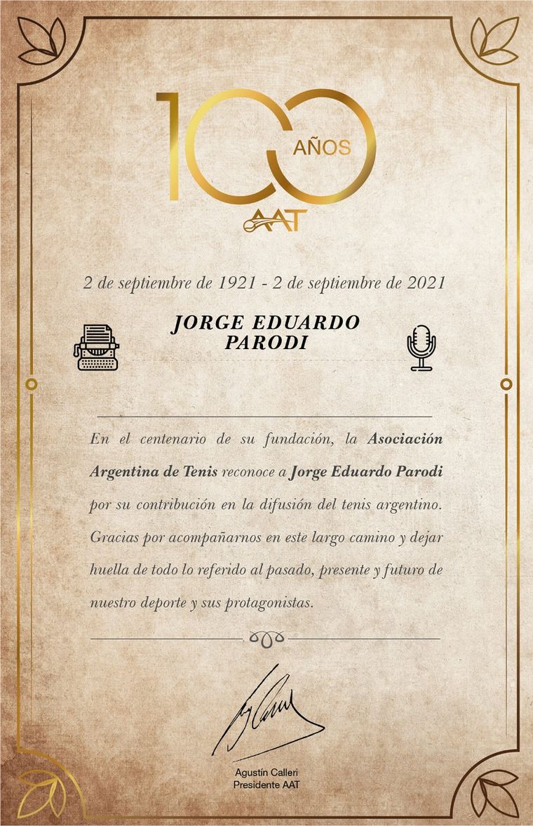 Audio. En su centenario, la AAT reconoció a Jorge Parodi por su labor cubriendo tenis
