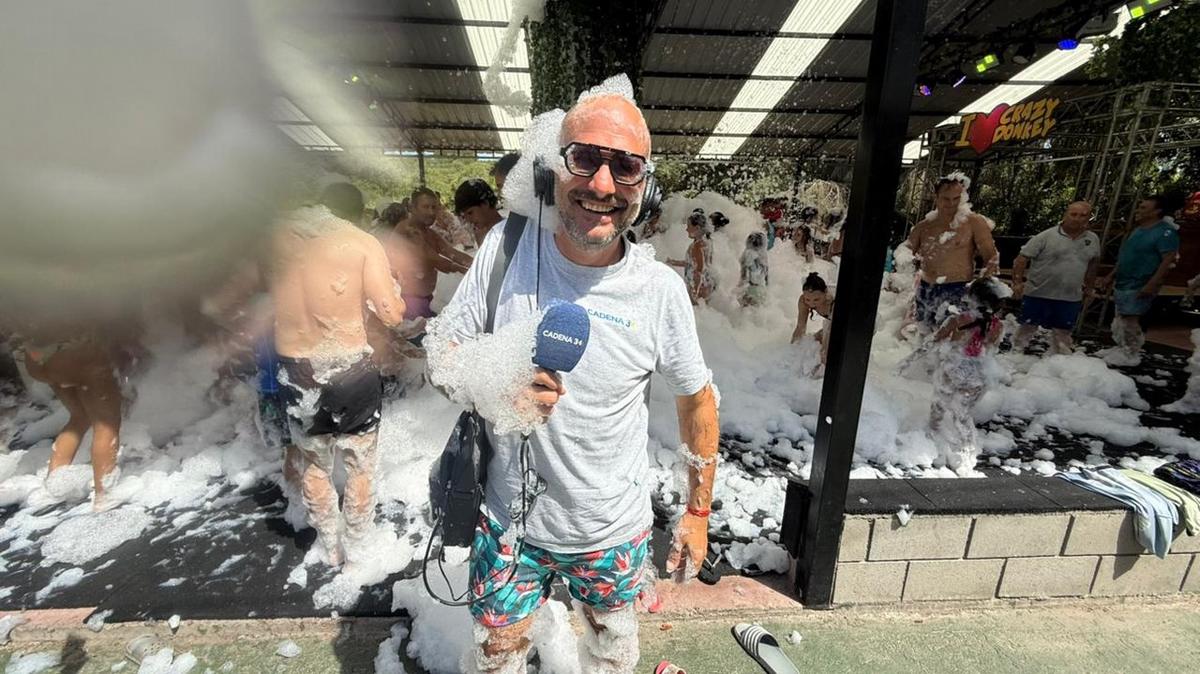 Uno de los grandes atractivos del parque es la fiesta de la espuma. Micrófono en mano, el periodista de Cadena 3 Alejandro Bustos se animó a vivir la divertida experiencia.