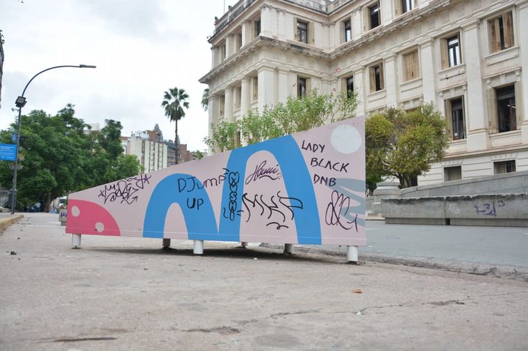 Ahora se producen hechos en el Paseo Sobremonte, por pintadas con aerosoles en bancos, muros, columnas de alumbrado y cestos de basura