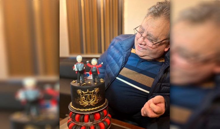 Acordeón, música, su amigo y compañero "Cacho" Deicas y los colores de Colón, su equipo del corazón, son algunos de los ingredientes que engalanan el pastel del festejo.