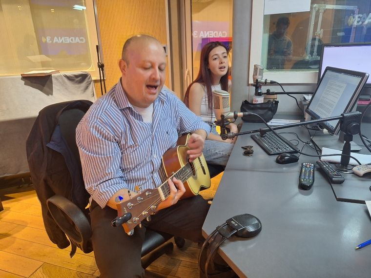 Lucas Burgueño y Ángela Burgueño, hijo y nieta de Hugo Burgueño, uno de los fundadores del grupo Los Iracundos, visitaron los estudios de Cadena 3 antes de su show en Córdoba.
