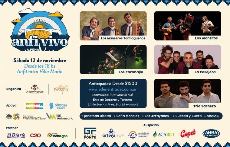 Como anticipo del Festival de Peñas de Villa María, el 12 de noviembre se realizará un espectáculo folclórico que también incluirá a Los Carabajal, Los Alonsitos, Trío Sachero y La Callejera.