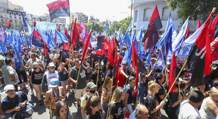 Las agrupaciones de izquierda fueron las primeras en llegar a la Plaza de Mayo, tras realizar una convocatoria a las 10 para marchar desde 9 de Julio por Avenida de Mayo hasta la Casa de Gobierno.