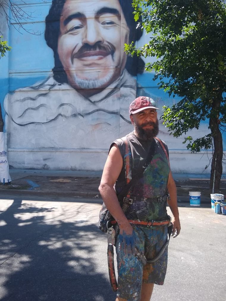No es la primera vez que el artista pinta a su ídolo. “Ya lo hice en una oportunidad, hace un tiempo pinté a “Diego, presidente del mundo” en un cuadro”, contó.