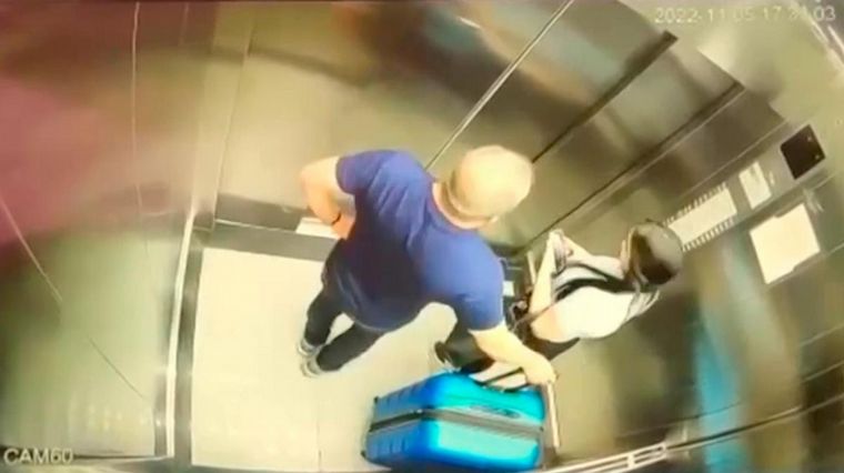 En uno de los videos, al que tuvo acceso Télam, se ve a los sospechosos -un hombre y una mujer- subir al un ascensor en el piso 20 y una vez en la planta baja retirarse por el sector destinado al personal de servicio.