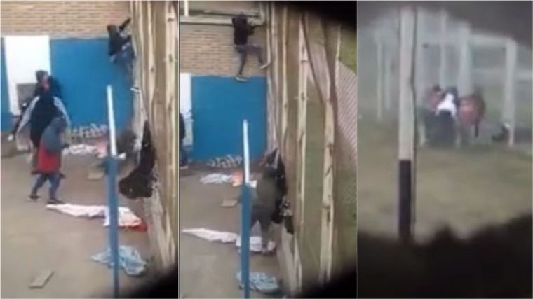 "Ahí se fueron los pibes. Se re tomaron el palo", se escucha decir a quien filma, mientras se ve a los detenidos trepar un cerco, para luego atravesar otro, en medio del tiroteo con penitenciarios.