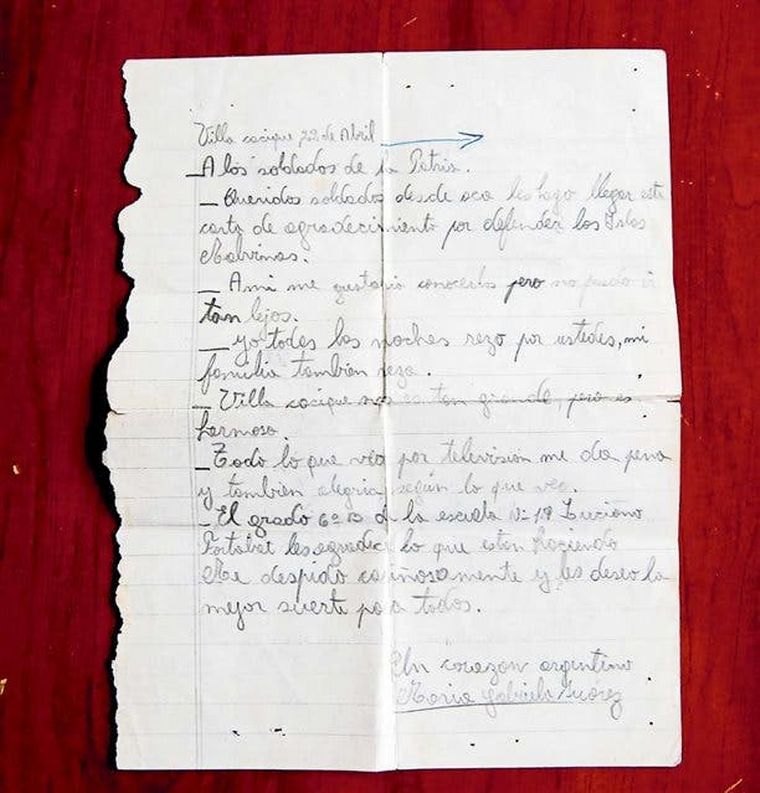 María Gabriela tenía 11 años cuando envió una carta a los soldados argentinos desde Villa Cacique en la provincia de Buenos Aires.