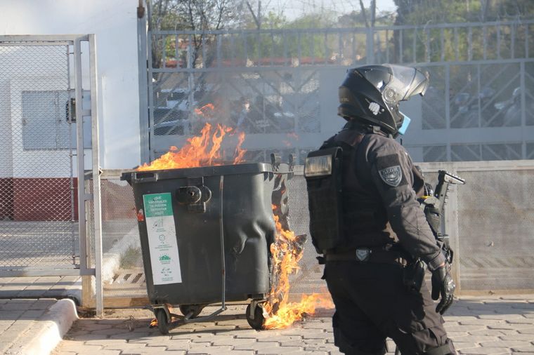 La guardia de Infantería de la Policía de Córdoba se apostó en el ingreso para evitar desmanes en las afueras.
