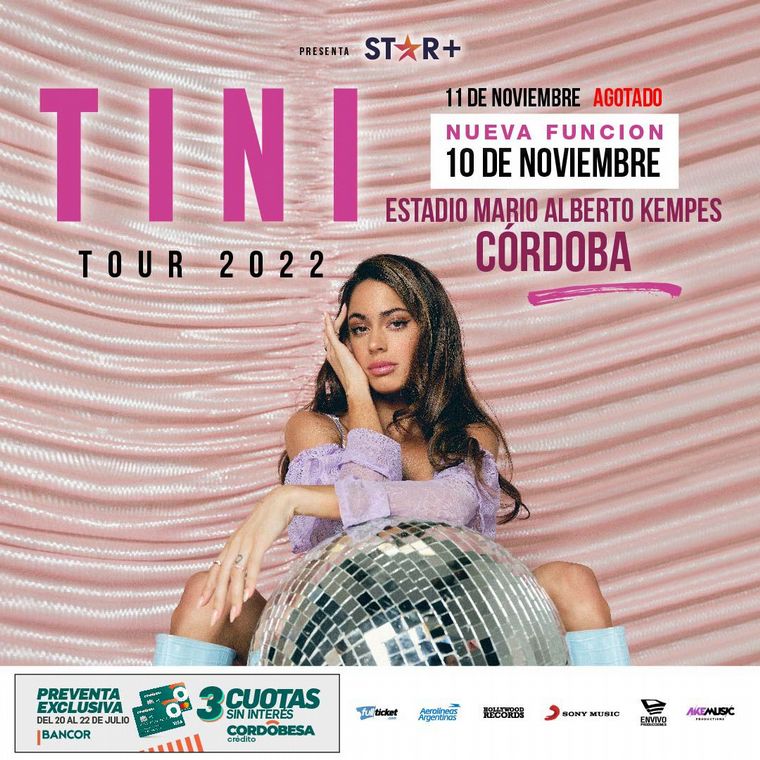 Tini Stoessel agregó un nuevo show musical en el Mario Alberto Kempes el 10 de noviembre luego de que se agotaran las entradas en menos de 24 horas para el 11 del mismo mes.