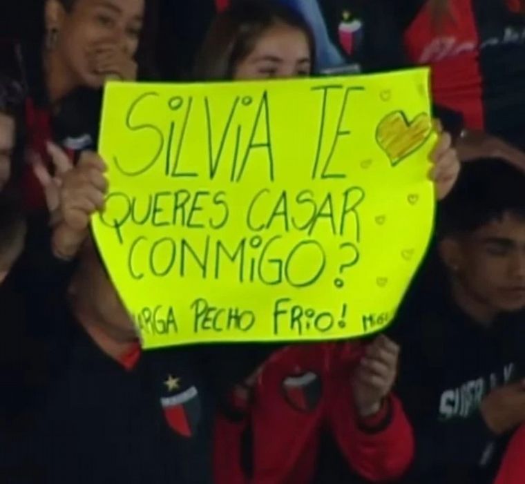 “Sospechaba que algo raro estaba armando, por llevar una cartulina a la cancha, pero no imaginaba lo que era”, le dijo Silvia a Cadena 3. Sin embargo, la mujer confesó que no vio la proposición en vivo. “Justo me había levantado a preparar la comida y no estaba viendo la tele cuando lo pasaron. Mi yerno fue el que me avisó que el cartel salió en la tele”, agregó.