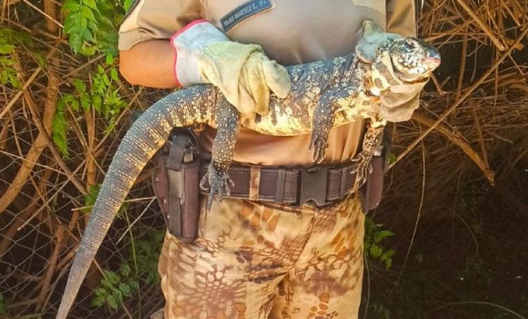 Vecinos de la zona suroeste de la ciudad de Córdoba se sorprendieron durante la siesta de este lunes al encontrarse con un lagarto overo.