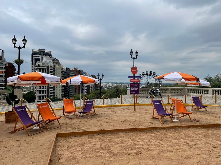 Naranja X montó una playa en el mirador del Parque Sarmiento para que los cordobeses y las familias que vacacionan en Córdoba disfruten de un espacio con juegos e instalaciones como si estuvieran al lado del río o del mar.