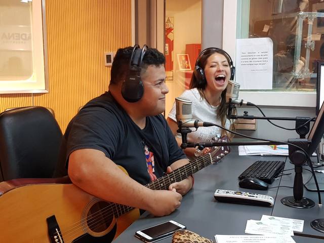 "Bomba" Allende y Magui Olave, parte del elenco de “El show de Camilo y Nardo” en Villa Carlos Paz, visitaron los estudios de Cadena 3.