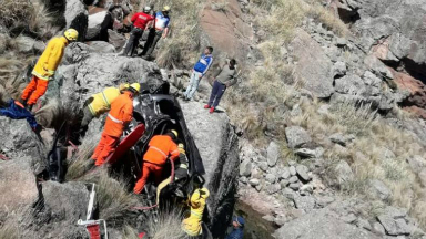 Una mujer y sus dos hijos pequeños resultaron heridos de distinta gravedad este sábado cuando la camioneta en la que viajaban cayó por un barranco de unos 80 metros de profundidad mientras transitaban por el Camino de las Altas Cumbres, cerca de la localidad cordobesa de Mina Clavero.