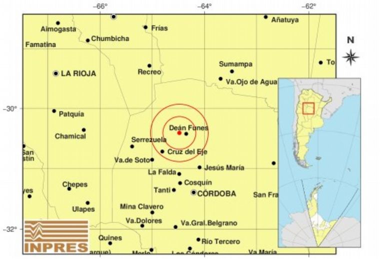 Fue a las 20.07. Tuvo una magnitud de 4.4 grados, según lo informado por el Instituto Nacional de Prevención SÃsmica. El epicentro se ubicó 21 kilómetros al oeste de Deán Funes, en el norte de la provincia mediterránea.
