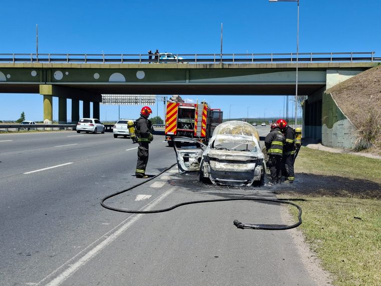 Por el siniestro cortaron dos carriles. La pareja a bordo no brindó declaraciones, mientras se investigan las causas del fuego. No hay heridos.